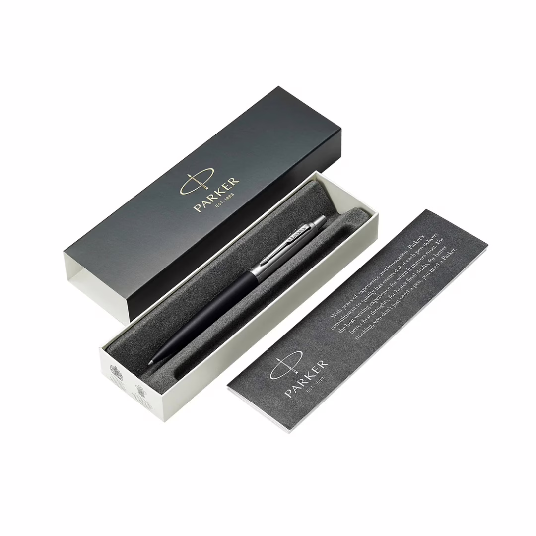 Con su distintivo acabado en Negro Mate y su tapa de acero inoxidable, este bolígrafo es el equilibrio perfecto entre modernidad y tradición. Incluye, por supuesto, el legendario clip en forma de flecha, símbolo de la herencia y la excelencia artesanal de Parker. Su mecanismo de botón retráctil garantiza una acción suave y precisa, ideal para quienes necesitan un compañero de escritura dinámico y confiable.