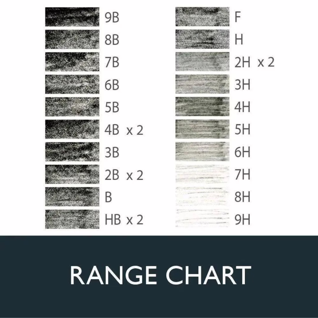 Rango Total de Graduación (9B – 9H): Este estuche cubre todo el espectro del grafito. Desde el 9H, fino y nítido para trazados arquitectónicos, hasta el 9B, suave y profundo para sombreados dramáticos, todos fabricados bajo estrictos estándares británicos de dureza.